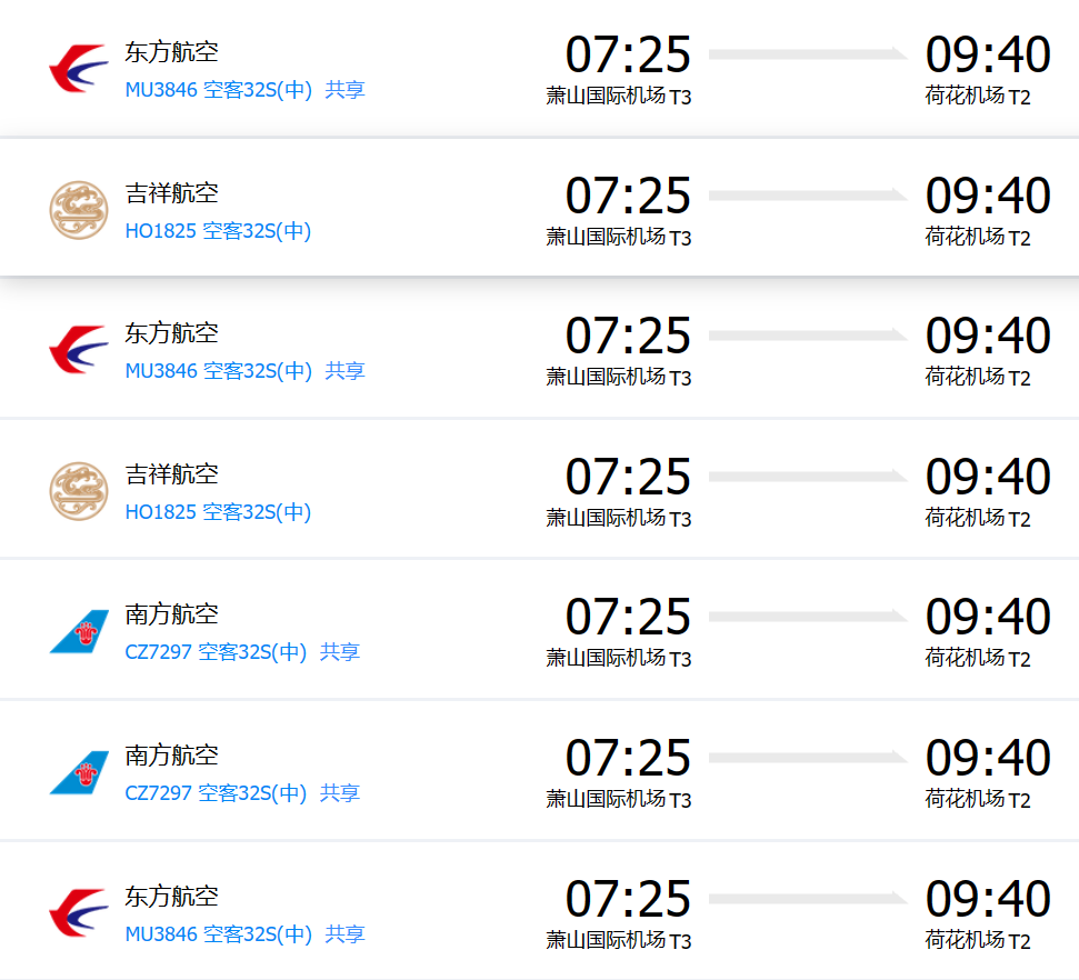 杭州蕭山國際機場有直達張家界荷花機場的航班,同樣方便舒適,具體參考如下:
