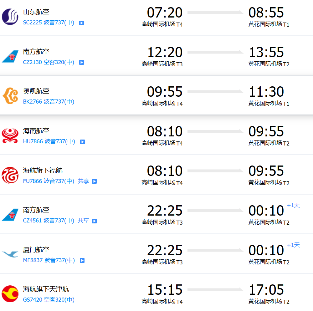 廈門高崎國際機(jī)場有直飛湖南長沙黃花機(jī)場的航班,具體參考如下: