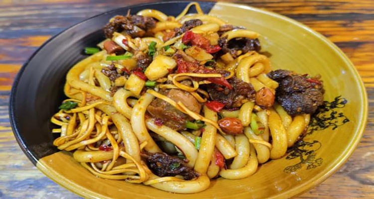 洪江血粑鴨是湘西極具代表性的一道菜肴,味道濃郁,美味獨特。把鴨肉放入到油鍋中,加入干辣椒、生姜、調(diào)味食材、糯米等一起翻炒,把鴨肉炸出油后倒入清水和鴨血小火燜煮,直至鴨肉酥爛。嘗上一口滿嘴油香,鴨肉酥爛入味,鮮味十足,極具風(fēng)味。