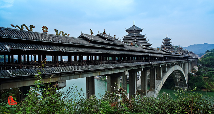 風(fēng)雨橋(又稱“花橋”)橫跨溪流,既是交通要道,也是侗族人乘涼、對(duì)歌、社交的場所,橋身雕刻精美,充滿藝術(shù)氣息。