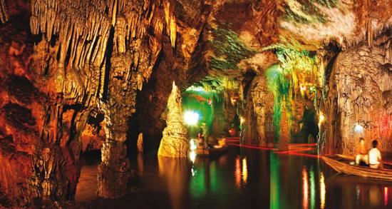 九天洞九天洞總面積250多萬平方米,折合4萬多畝。這樣一個(gè)大溶洞,比堪稱世界第一洞的利川溶洞還大3倍。據(jù)《環(huán)球天然奇觀》一書介紹,南斯拉夫的波斯托伊納大巖洞與美國的巴哈馬大藍(lán)洞,都稱為"世界上最大的洞",還有古巴的貝拉雅馬爾大巖洞與我國貴州、湖北神農(nóng)架一些溶洞,也都被稱為"世界或中國最大的溶洞"??墒沁@些溶洞,同九天洞比較,都會(huì)感到遜色不少。1988年,中國科學(xué)地質(zhì)研究所巖溶與地下水研究室主任張壽越教授兩次來九天洞考察,他認(rèn)為該洞是亞洲第一大洞,于是他給九天洞題詞:"滴石鑄玄女,暗河鏤九天"。1988年9月下旬,來自美國、英國與比利時(shí)的15位洞穴專家對(duì)九天洞作深入研究,連續(xù)7天7夜住在洞內(nèi)全面考察。通過考察,他們一致認(rèn)為九天洞是世界奇跡,不僅具有很高的旅游價(jià)值,同時(shí)還有很高的科研價(jià)值。