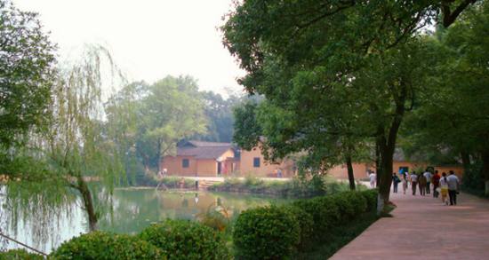故居前面有一口水塘,房后有一抹低山,整個(gè)故居被一片郁郁蔥蔥的樹(shù)林年環(huán)抱。