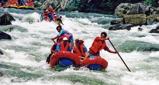 被譽(yù)為“中國(guó)生態(tài)第一漂”,位于東江湖最南端的黃草鎮(zhèn)境內(nèi),全程26千米。從龍王廟起漂點(diǎn)到燕子排終漂點(diǎn)整個(gè)落差75米,急灘108個(gè),漂流河道兩巖有保存比較完好的原始次森林,奇巖怪石林立,古樹遮天蔽日,老藤攀崖附壁,飛鳥跳躍枝頭。東江漂流以其灘多浪急落差大、水碧石怪魚奇怪、兩岸森林植被佳而 聞名,是國(guó)內(nèi)目前最具探險(xiǎn)的融歷險(xiǎn)、探幽、獵奇、拾趣為一體的漂流去處。