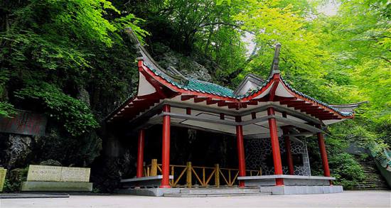 桃花居上方。洞內(nèi)寬敞,洞頂一般來說巖突,怪石猙獰,洞外藤葛披拂,叢林繁茂。傳說白鹿、白鶴在此為蘇耽哺乳、御寒。
